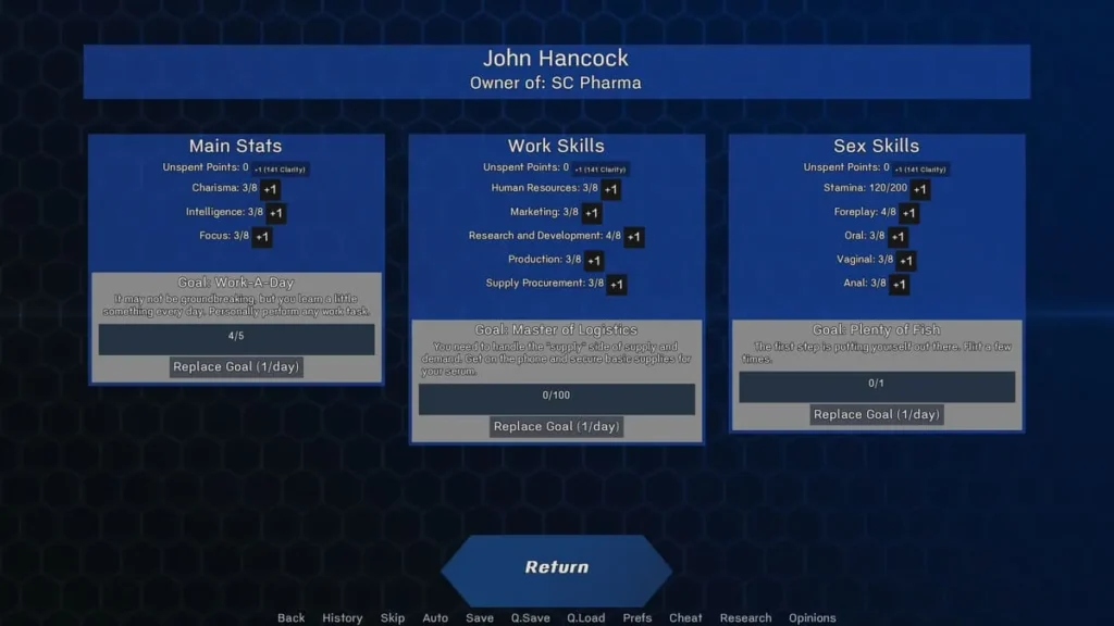 - Cum Capacity: A unique and crucial stat. It represents a physical limit that gates progress and triggers events. Pushing it too fast is dangerous, but growing it steadily is key. Specific endings require you to have massively expanded this limit.